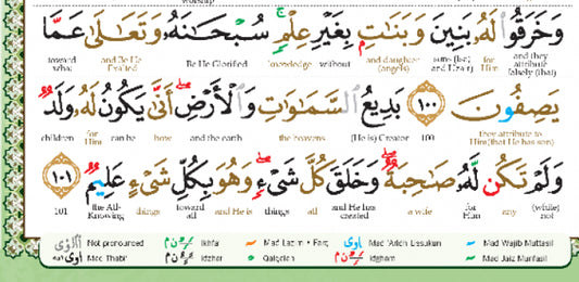 The Noble Quran Word by word English translation and color coded tajweed all sizes: A5-B5-A4